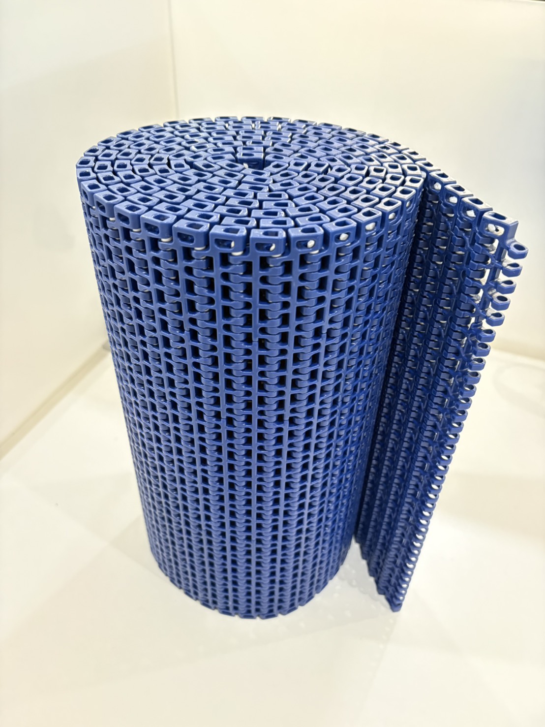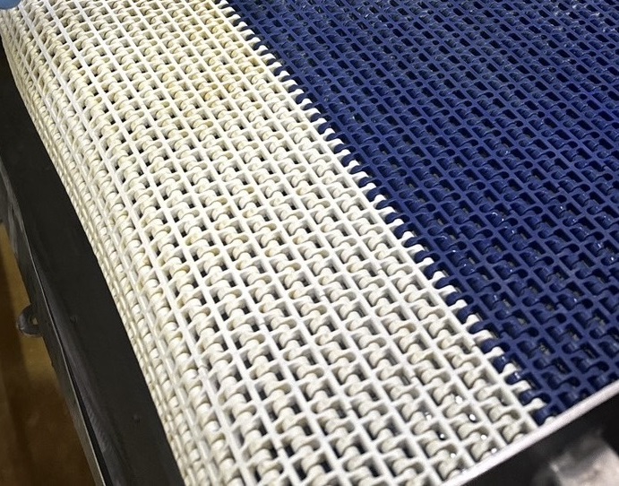 • การระบายที่ดีและรักษาสุขอนามัย (Excellent Drainage): รูปแบบหน้าตะแกรง (Flush Grid) ช่วยให้ของเหลว น้ำล้าง หรือเศษผงจากการผลิตร่วงผ่านสายพานลงไปด้านล่างได้ง่าย