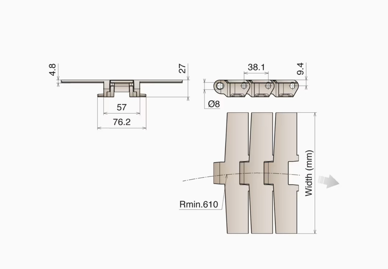 -Sideflexing radius min : 610 mm
