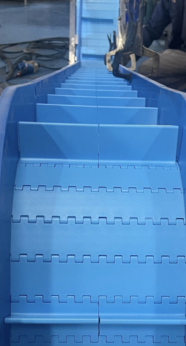 Cleated / Product Support คืออุปกรณ์เสริมที่ติดตั้งบนสายพานลำเลียง เพื่อช่วย รองรับสินค้า ป้องกันการไหลย้อน และควบคุมทิศทางของวัสดุ โดยเฉพาะในระบบลำเลียงแนวเอียง หรือการขนส่งวัสดุที่มีลักษณะเป็นเม็ด ชิ้นเล็ก หรือไหลง่าย